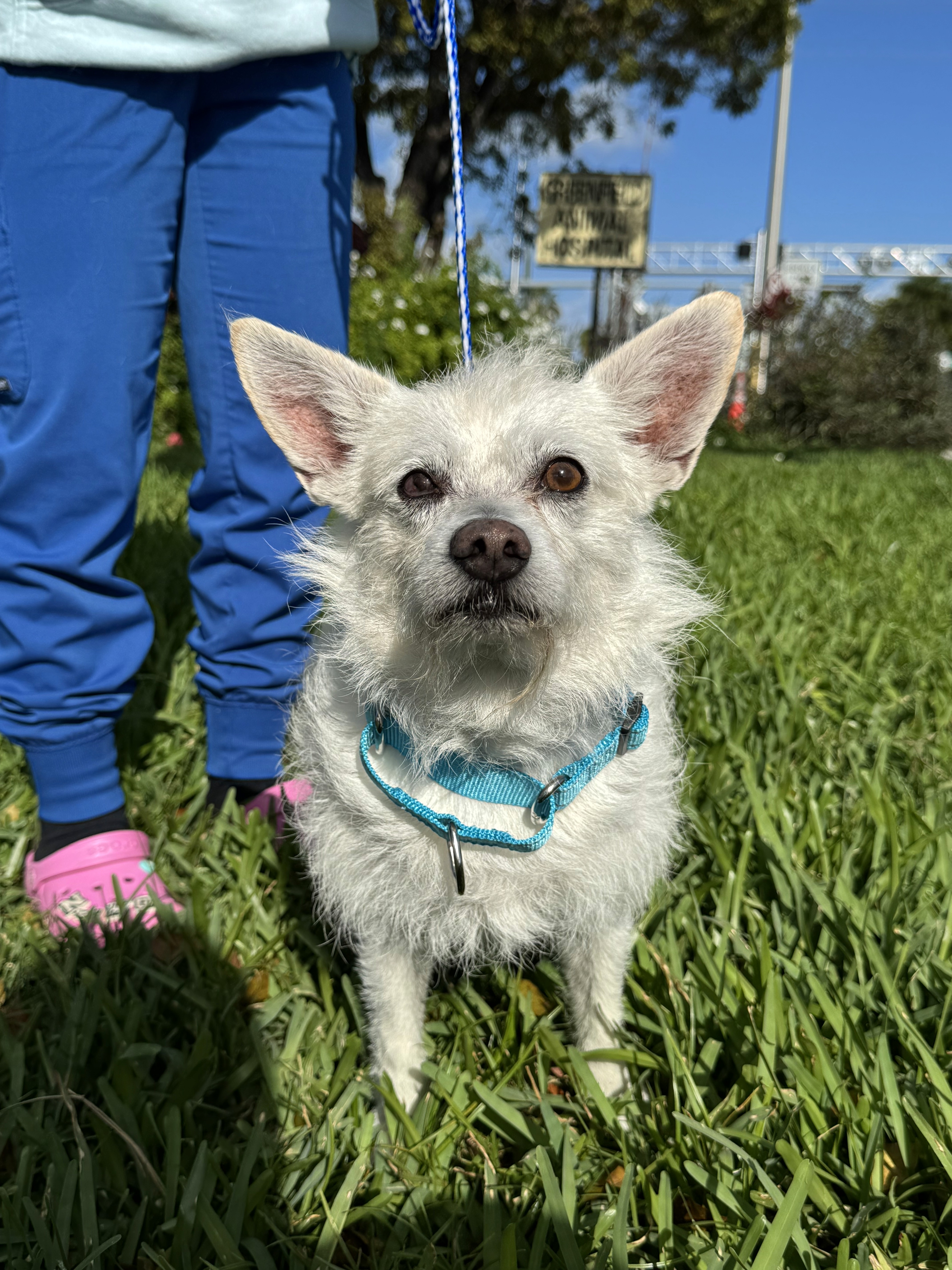 He’s a gentle, calm boy who does great with other dogs and everyone he meets. He’s wonderful on walks, great in the car, and truly just loves being close to his people. Angel thrives in a quiet, loving home where he can finally feel safe.